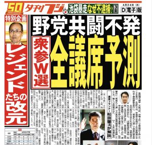 夕刊フジ(2019年4月23日発行)にて代表の選挙プランナー松田馨が衆参ダブル選 全議席予測