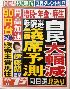 夕刊フジ(2019年6月26日発行)にて代表の選挙プランナー松田馨が参院選議席予測