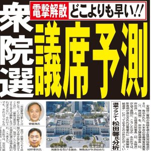 夕刊フジ(2020年9月8日発行)にて代表の選挙プランナー松田馨が衆院選 議席予測