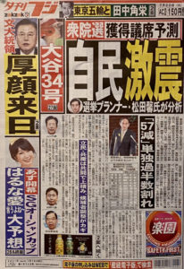 夕刊フジ(2021年7月19日発行)にて代表の選挙プランナー松田馨が衆院選 議席予測