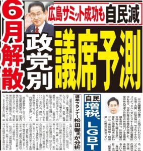 夕刊フジ(2023年5月23日発行)にて代表の選挙プランナー松田馨が衆院選 議席予測